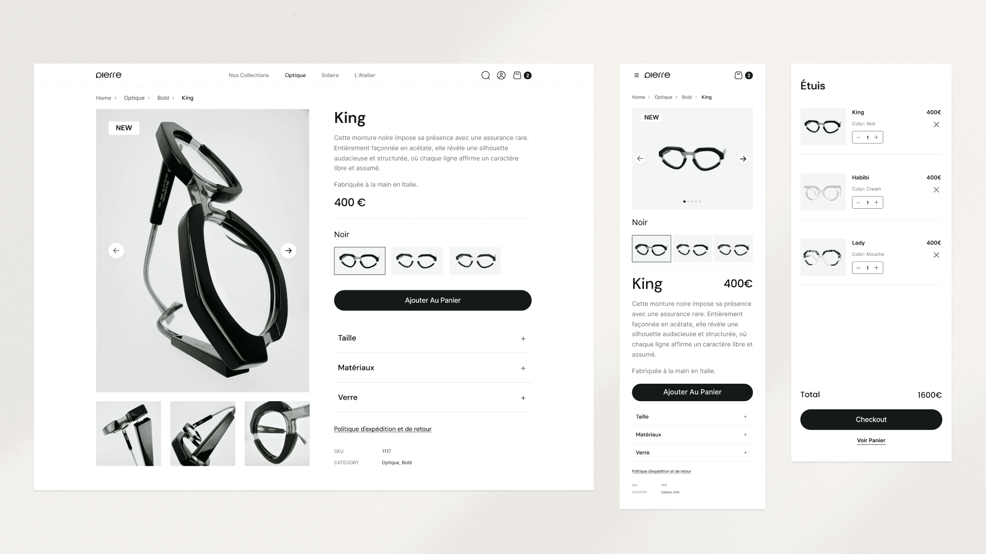 In this project, I created the brand’s visual identity and led its artistic direction, from branding to product design and visual communication. The logo, built around a stylized “P”, became more than just a symbol — it inspired the shape of a frame. This design later became the brand’s signature piece, reflecting Pierre Eyewear’s identity and winning a design Award in New York in 2022.